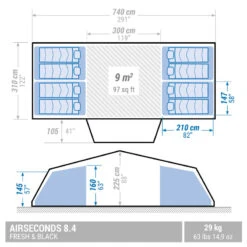 Quechua Tente Gonflable De Camping – Air Seconds 6.3 XXL F&B – 6 Personnes – 3 Chambres