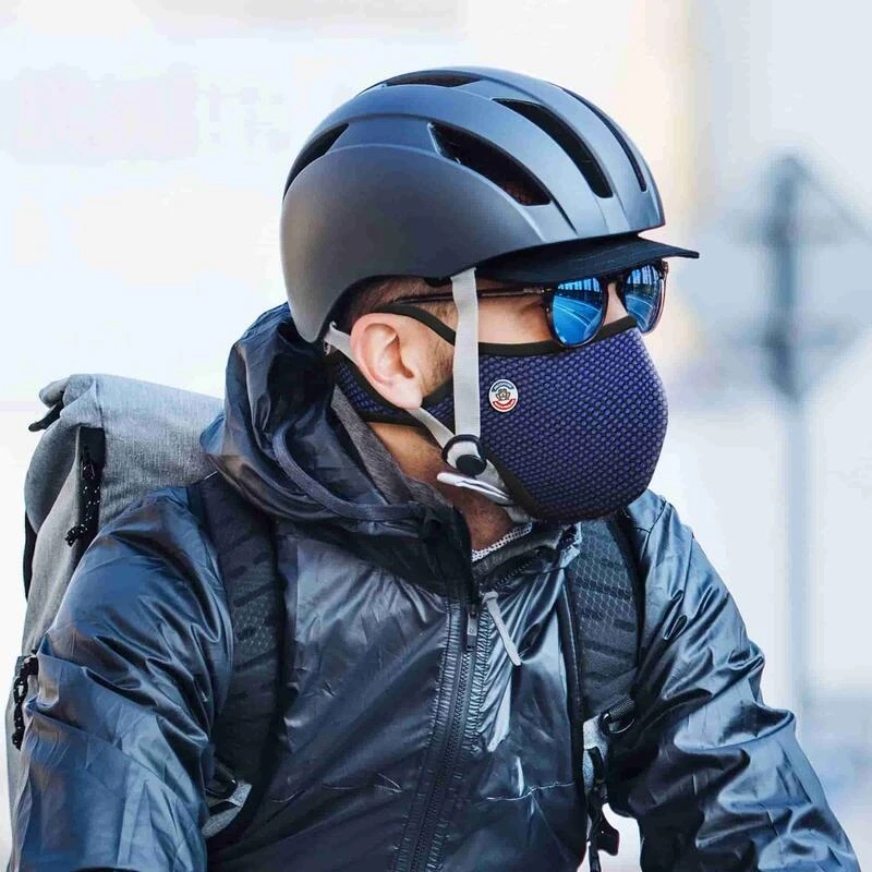 Masque antipollution Frogmask pour cyclistes et motards fabriquĂ© en France avec filtres FFP2 interchangeables. 3 tailles M, L et XL pour une filtration optimale jusqu’Ă 0,4”m. Livraison gratuite.