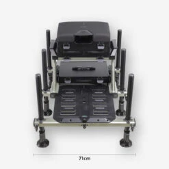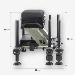 La hauteur que nous avons validĂ© sur la station est de 44cm car nous avons pris en compte que pour un poids moyen l’assise s’affaissera d’environ 2cm pour arriver sur la cible Ă 42cm lors de la partie de pĂȘche.