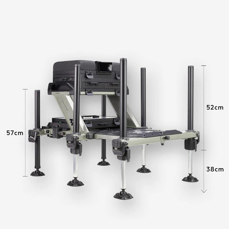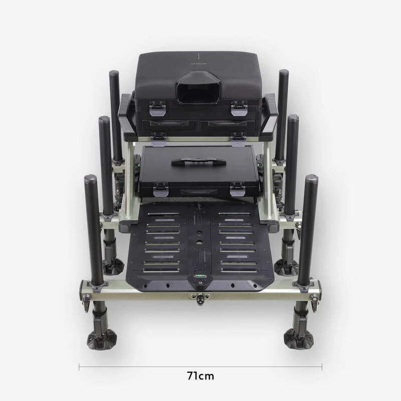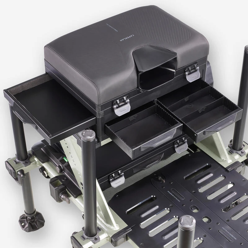 Station de pĂȘche spĂ©cialement dĂ©veloppĂ©e par notre Ă©quipe de concepteurs pour le pĂȘcheur au coup qui souhaite ĂȘtre confortablement installĂ© au bord de l’eau.L’utilisation du « Concentric System CS » sur ses pieds lui donne un avantage pour un rĂ©glage facile et rapide sur la berge !