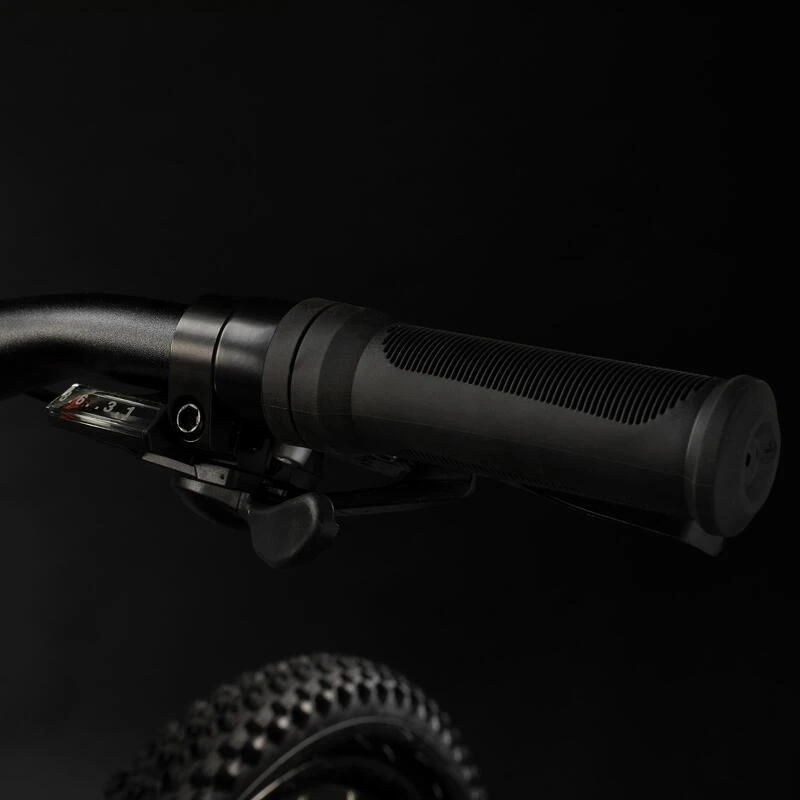 Affrontez les nouveaux obstacles (racines, cailloux, pierres,…) en toute sĂ©rĂ©nitĂ© grĂące au dĂ©battement de la fourche avant. Fourche Suntour avec 50 mm de dĂ©battement.
